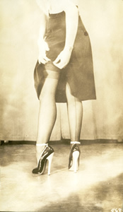 Charles Guyette had a business in New York City selling theatrical costumes. For a time he sold photographs showing models in high heel shoes which served as a catalog for the footwear he was offering. He also sold other types of photographs which aren’t shown in the ebook: boots, corsets, other types of fetish clothing, and bondage (advertisement is from August 10, 1935 issue of London Life).